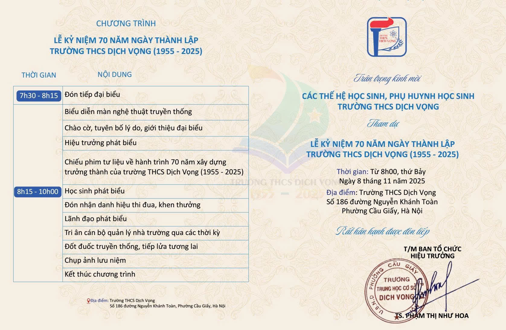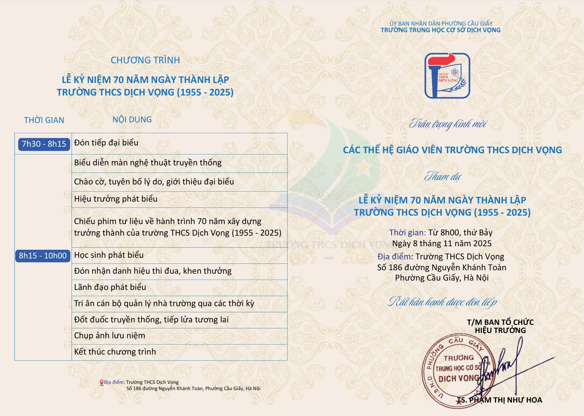 ​ 70 NĂM - MỘT ĐIỂM HẸN LỊCH SỬ - MỘT HÀNH TRÌNH TỰ HÀO - MỘT THCS DỊCH VỌNG 70 NĂM TUỔI
