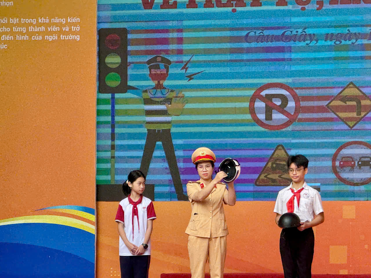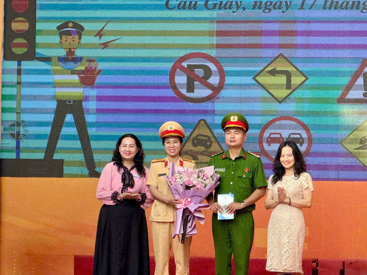 🎗️ Buổi chuyên đề vinh dự đón tiếp Cán bộ Công an phường Cầu Giấy: Đ/c Đại úy Lê Quang Vũ, đ/c Trung tá Nguyễn Thanh Bình đến giao lưu, chia sẻ và hướng dẫn trực tiếp những kiến thức, kĩ năng tham gia giao thông văn minh, an toàn cho các em học sinh.