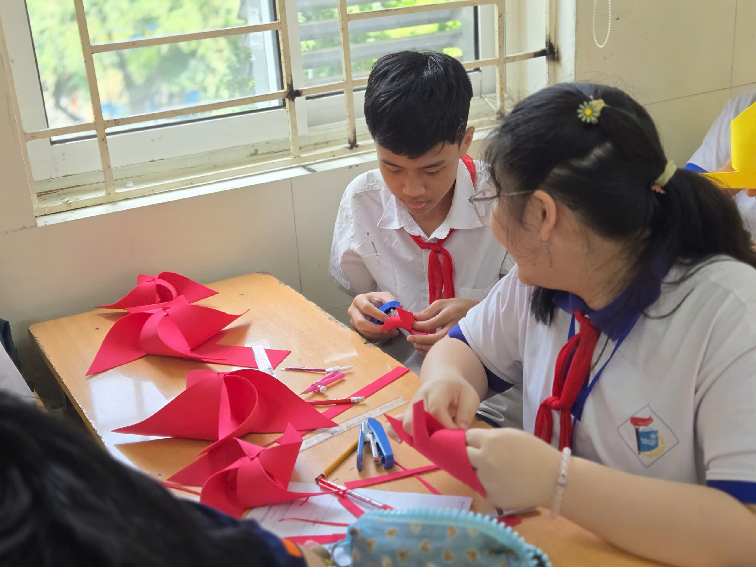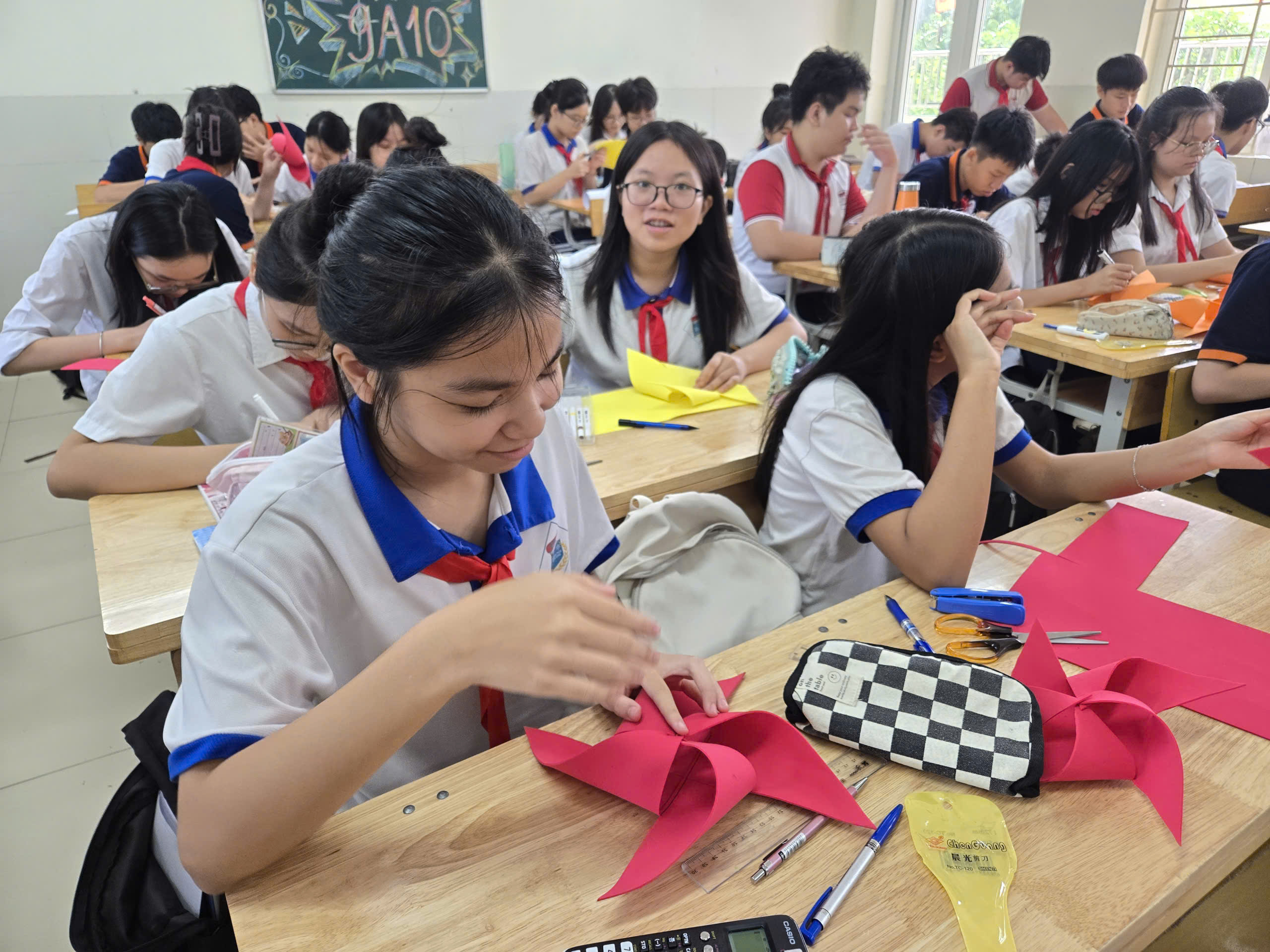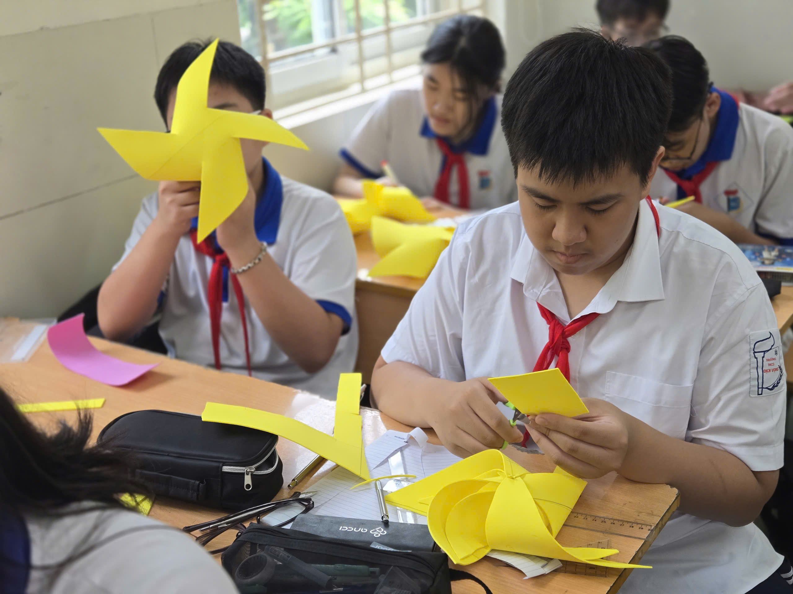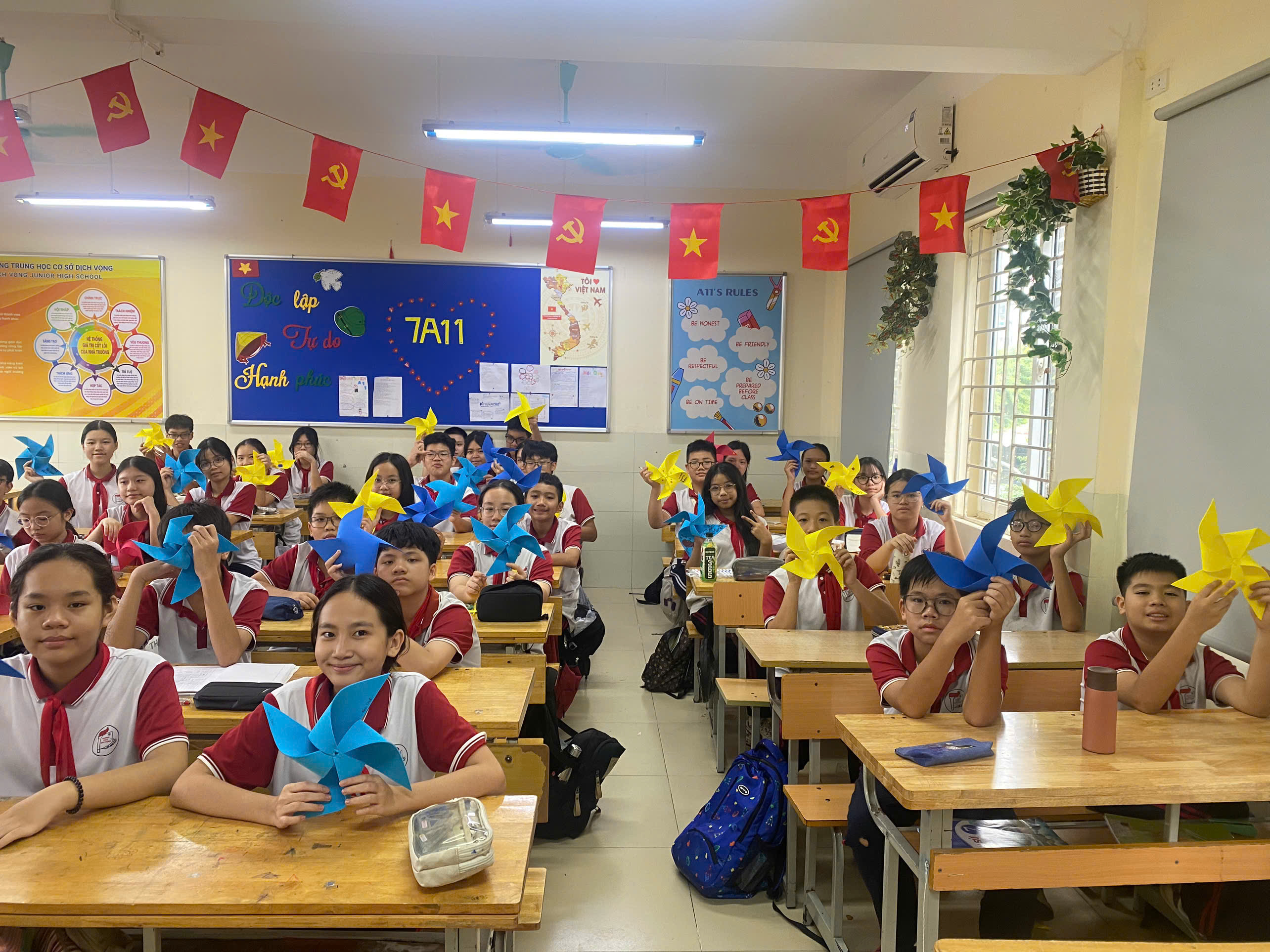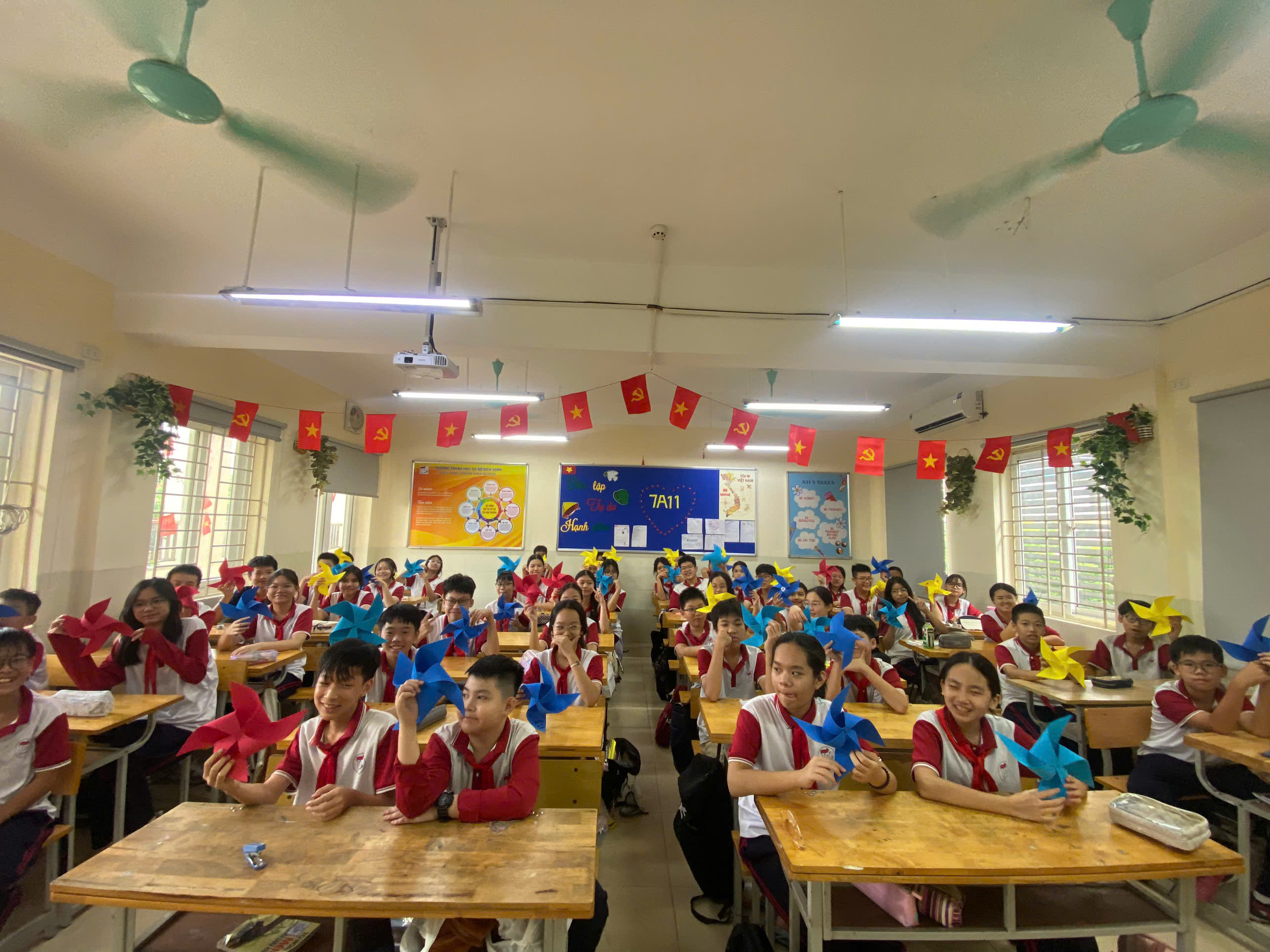 🌀 Hoạt động “CHONG CHÓNG QUAY-ƯỚC MƠ BAY” được phát động rộng rãi tại các khối lớp, đây không chỉ là sân chơi sáng tạo mà còn là dịp để học sinh hiểu thêm về vẻ đẹp dân gian và giá trị của sự khéo léo, tỉ mỉ trong từng sản phẩm thủ công. Từng chiếc chong chóng được tạo ra từ những tấm xốp màu nhưng mang theo cả bầu trời ký ức tuổi thơ của bao thế hệ học trò.