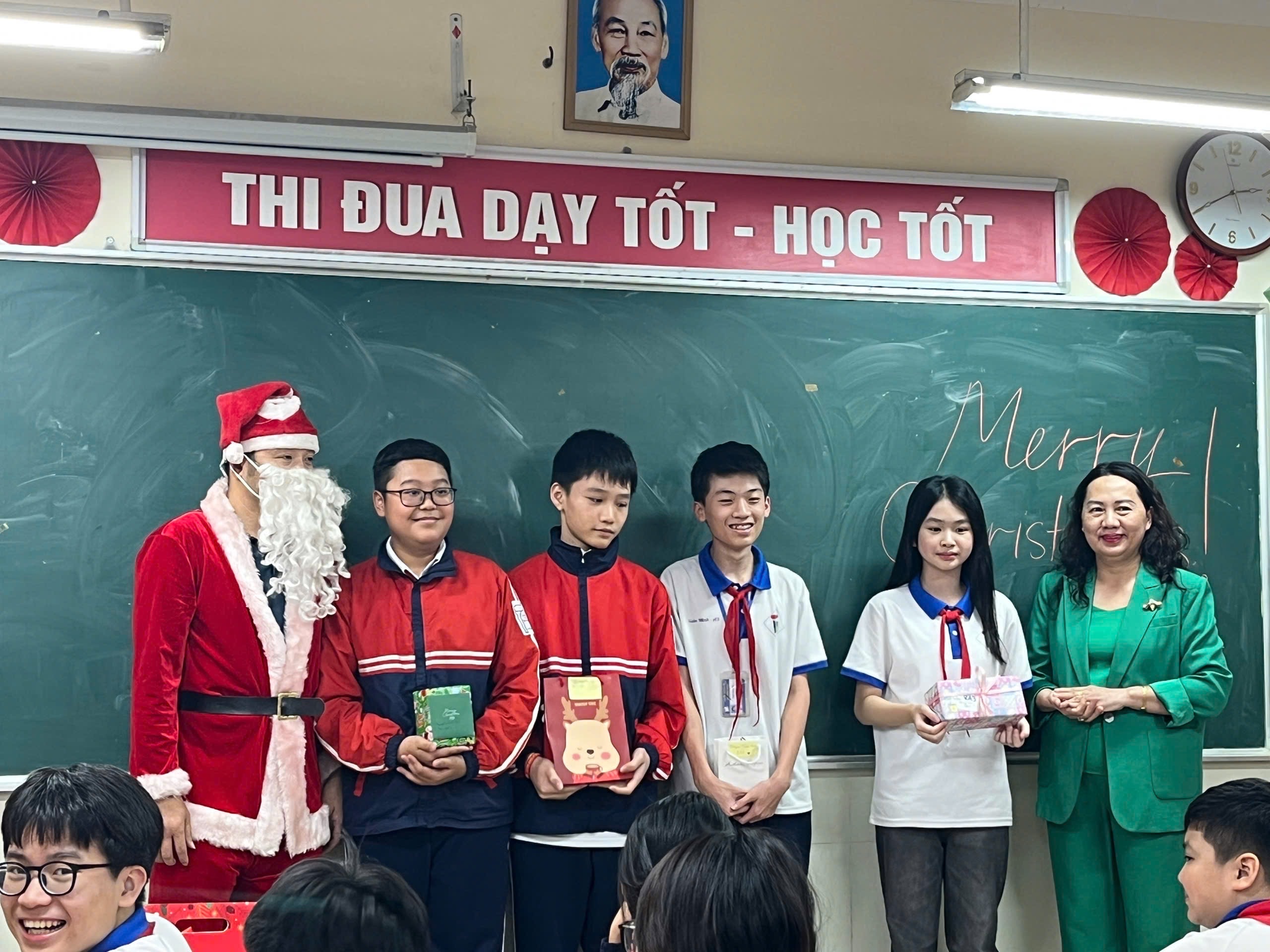 🎁🎅💕Với mong muốn mang đến cho các em học sinh mùa Giáng sinh an lành và hạnh phúc, các thầy cô trong Ban giám hiệu cùng các “ông già Noel” của nhà trường đã đến từng lớp học chúc mừng và trao tận tay các em những món quà nhỏ xinh do phụ huynh và bạn bè chuẩn bị, gửi gắm bao yêu thương trong dịp lễ này.