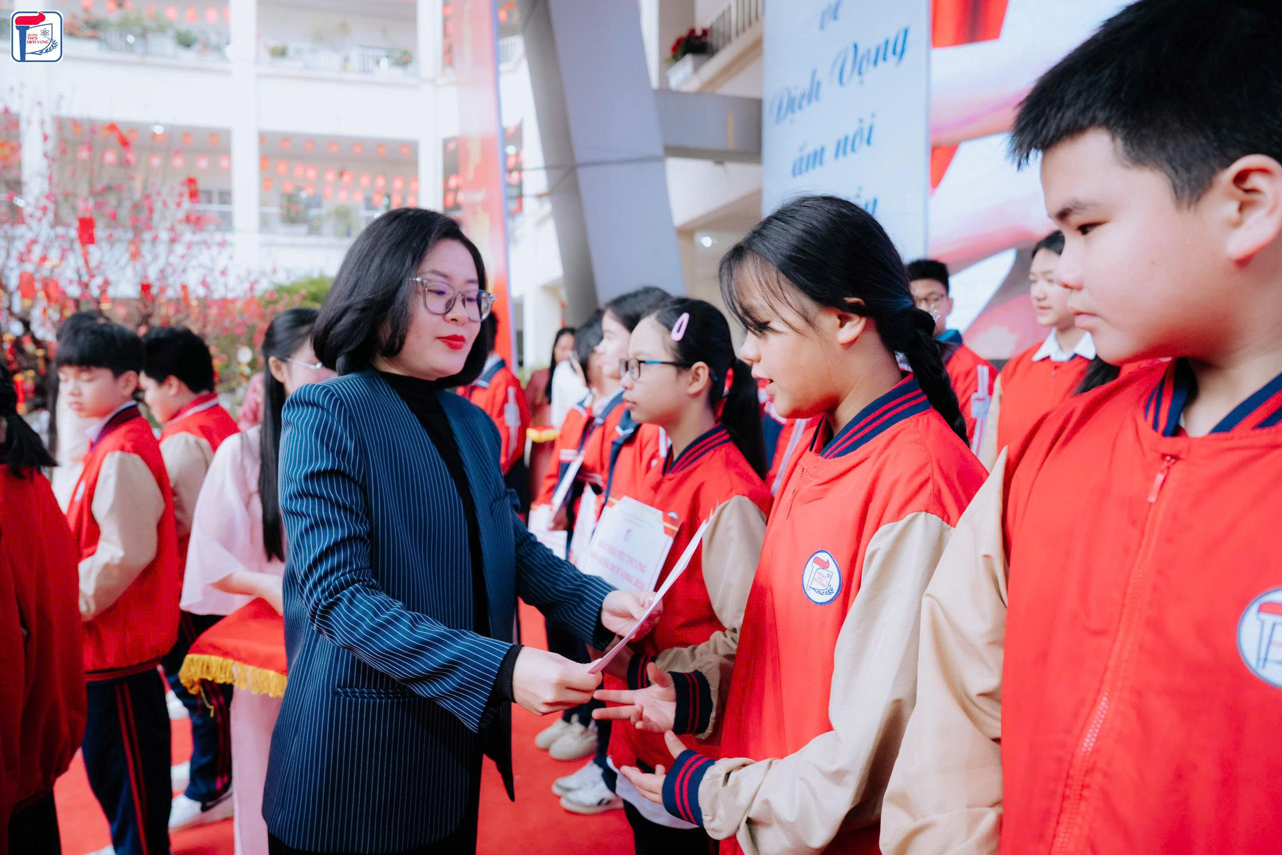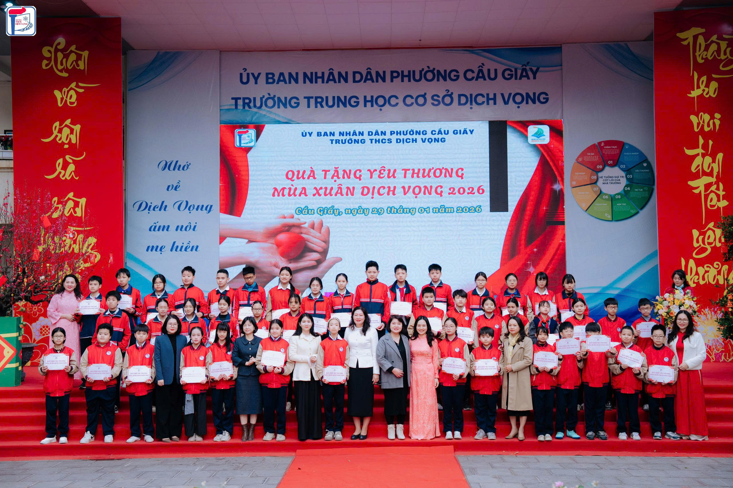 ❤️ Không chỉ dừng lại ở niềm vui trải nghiệm, “Sắc Xuân Dịch Vọng 2026” còn mang chiều sâu nhân văn khi nhà trường trao tặng 50 phần quà cho các em học sinh có hoàn cảnh khó khăn. Mỗi phần quà không chỉ mang giá trị vật chất mà còn là nguồn động viên tinh thần, tiếp thêm niềm tin và nghị lực để các em vươn lên trong học tập và cuộc sống, hướng tới một mùa Xuân trọn vẹn hơn. Đặc biệt, thông qua chương trình “Mùa xuân yêu thương”, Thầy và trò nhà trường còn chung tay gửi những món quà nghĩa tình tới học sinh Trường Tiểu học và THCS Chí Linh (Thanh Hóa), góp phần lan tỏa yêu thương trong những ngày đầu năm mới.