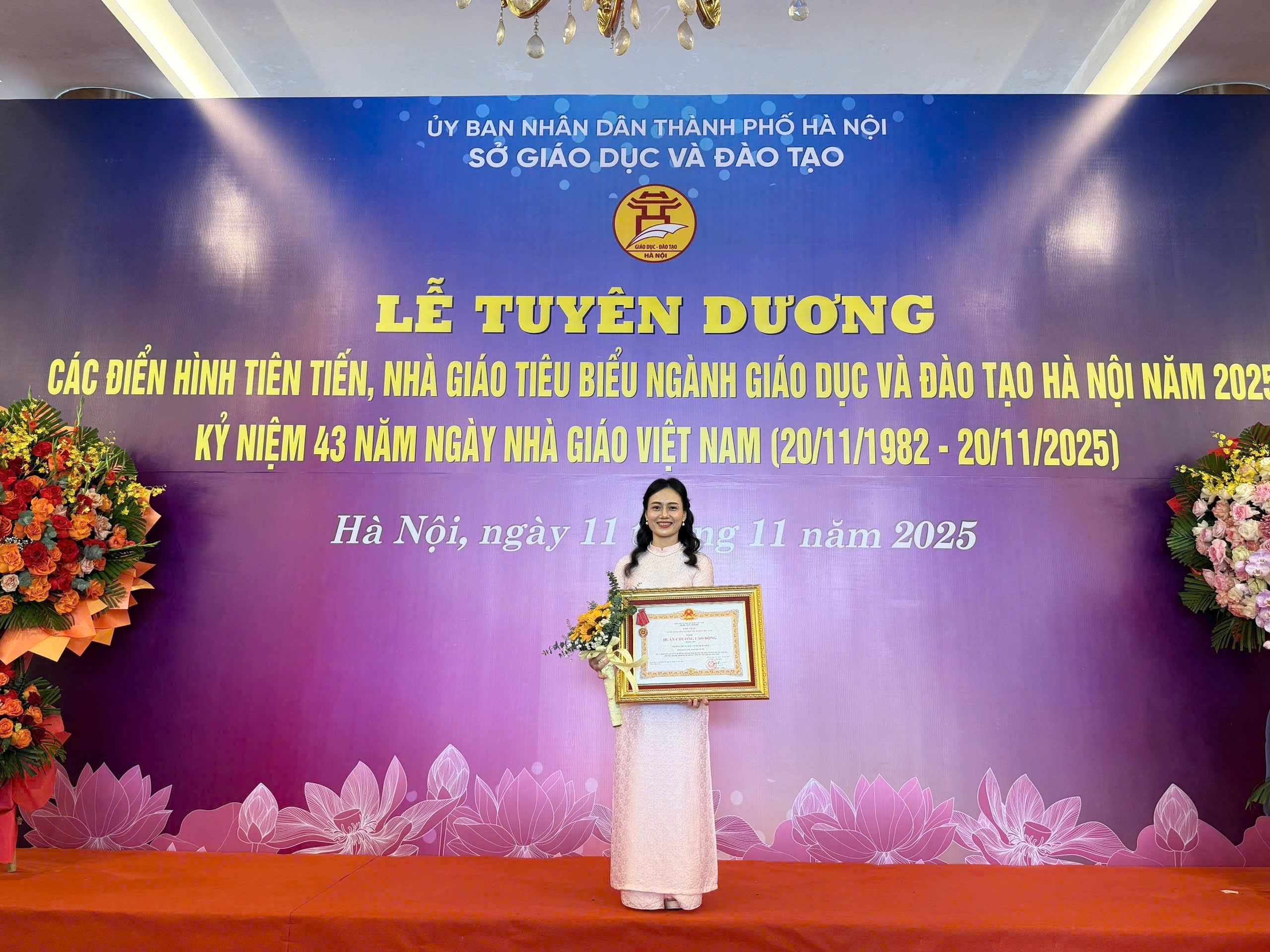 Nhà giáo, Tiến sĩ Phạm Thị Như Hoa – Bí thư Đảng uỷ, Hiệu trưởng Trường THCS Dịch Vọng đại diện tập thể cán bộ, giáo viên, nhân viên và học sinh nhà trường trân trọng đón nhận phần thưởng cao quý trong không khí trang trọng, tự hào.