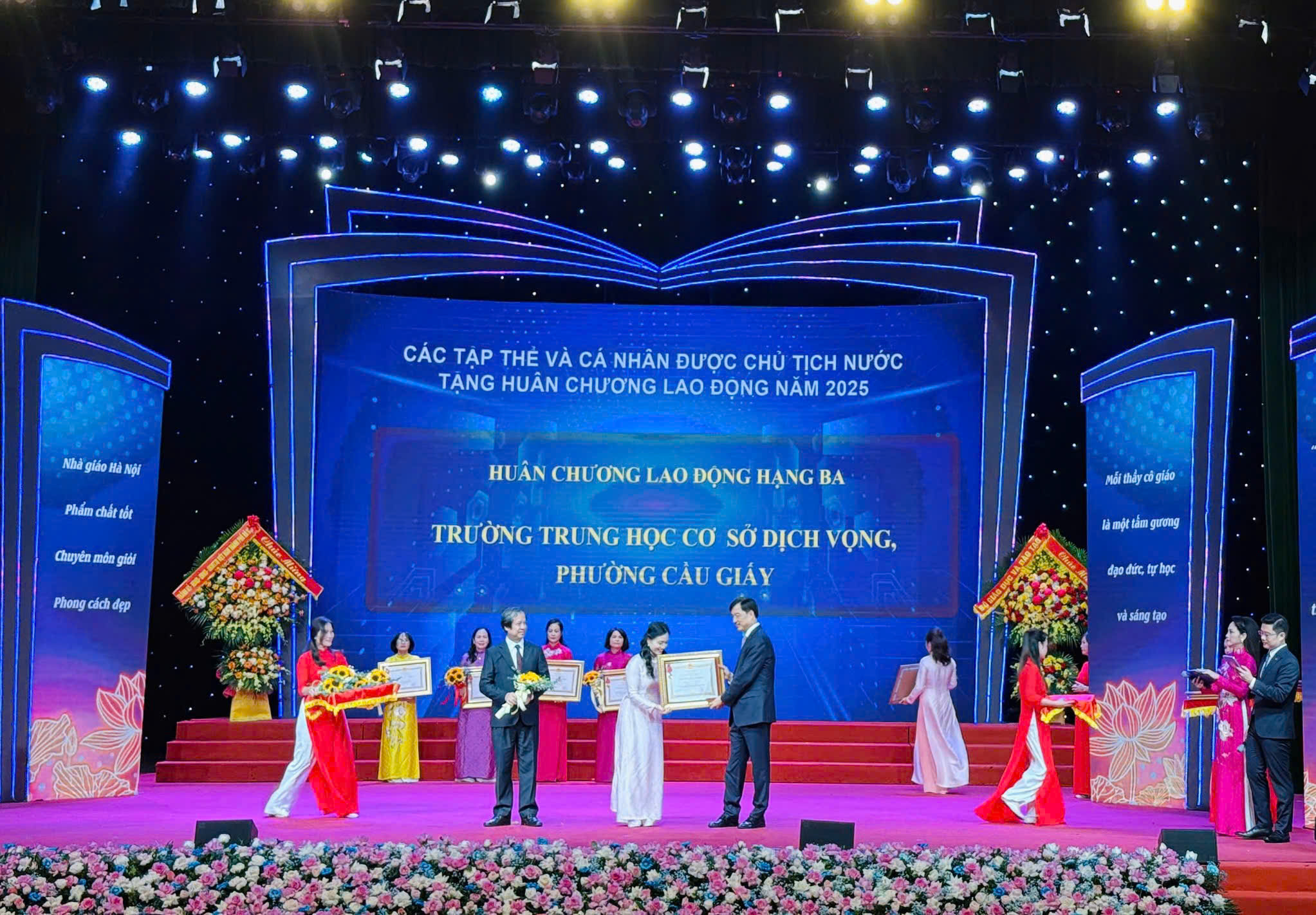 Sáng ngày 11/11/2025, tại Cung Văn hóa Lao động Hữu nghị Việt - Xô, trong chương trình Tuyên dương điển hình tiên tiến, nhà giáo tiêu biểu ngành Giáo dục và Đào tạo Hà Nội năm 2025, Trường THCS Dịch Vọng vinh dự được Chủ tịch nước trao tặng Huân chương Lao động hạng Ba – phần thưởng cao quý ghi nhận những nỗ lực, cống hiến bền bỉ của tập thể nhà trường trong sự nghiệp giáo dục Thủ đô.