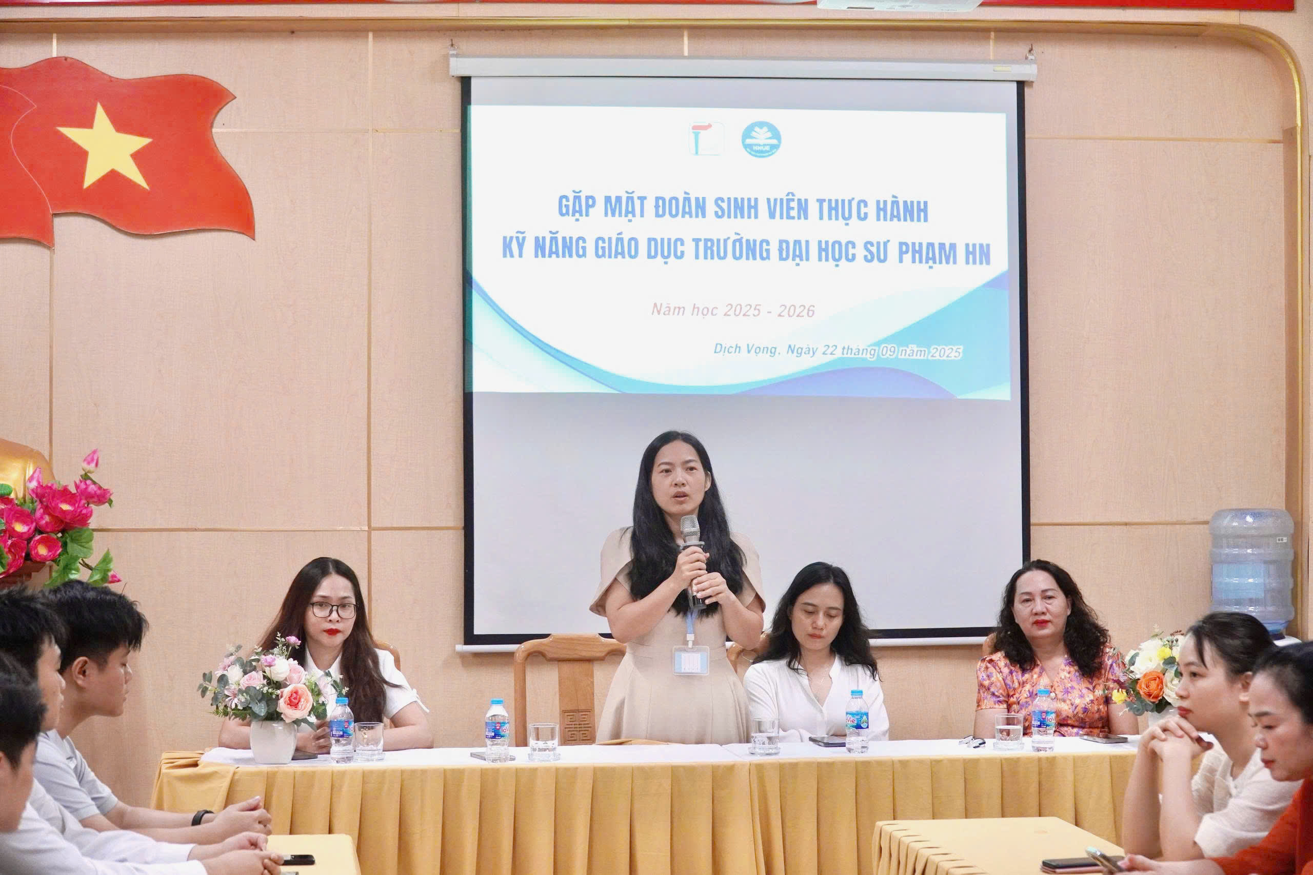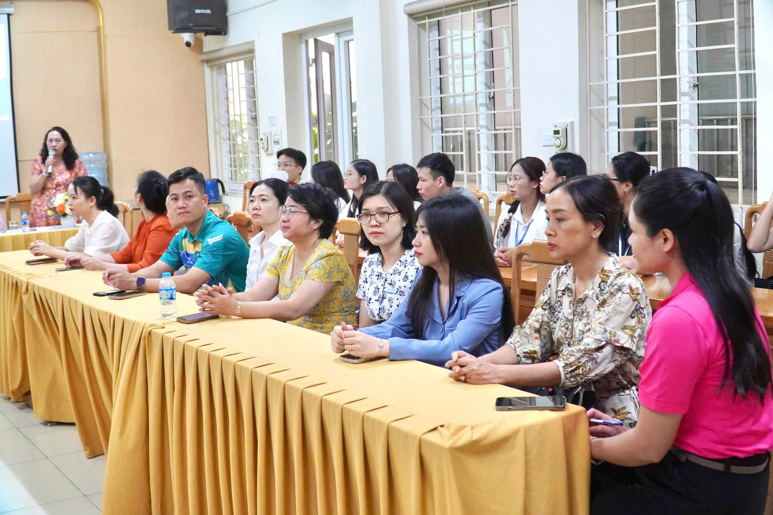 💥Đại diện Ban Giám hiệu nhà trường, cô Nguyễn Thị Hồng Minh- Phó Hiệu trưởng bày tỏ sự vui mừng,chào đón đoàn giáo sinh kiến tập, cô cũng gửi lời chúc mừng, động viên các giáo sinh sẽ phát huy năng lực và tích lũy kinh nghiệm để có một kì kiến tập thành công.