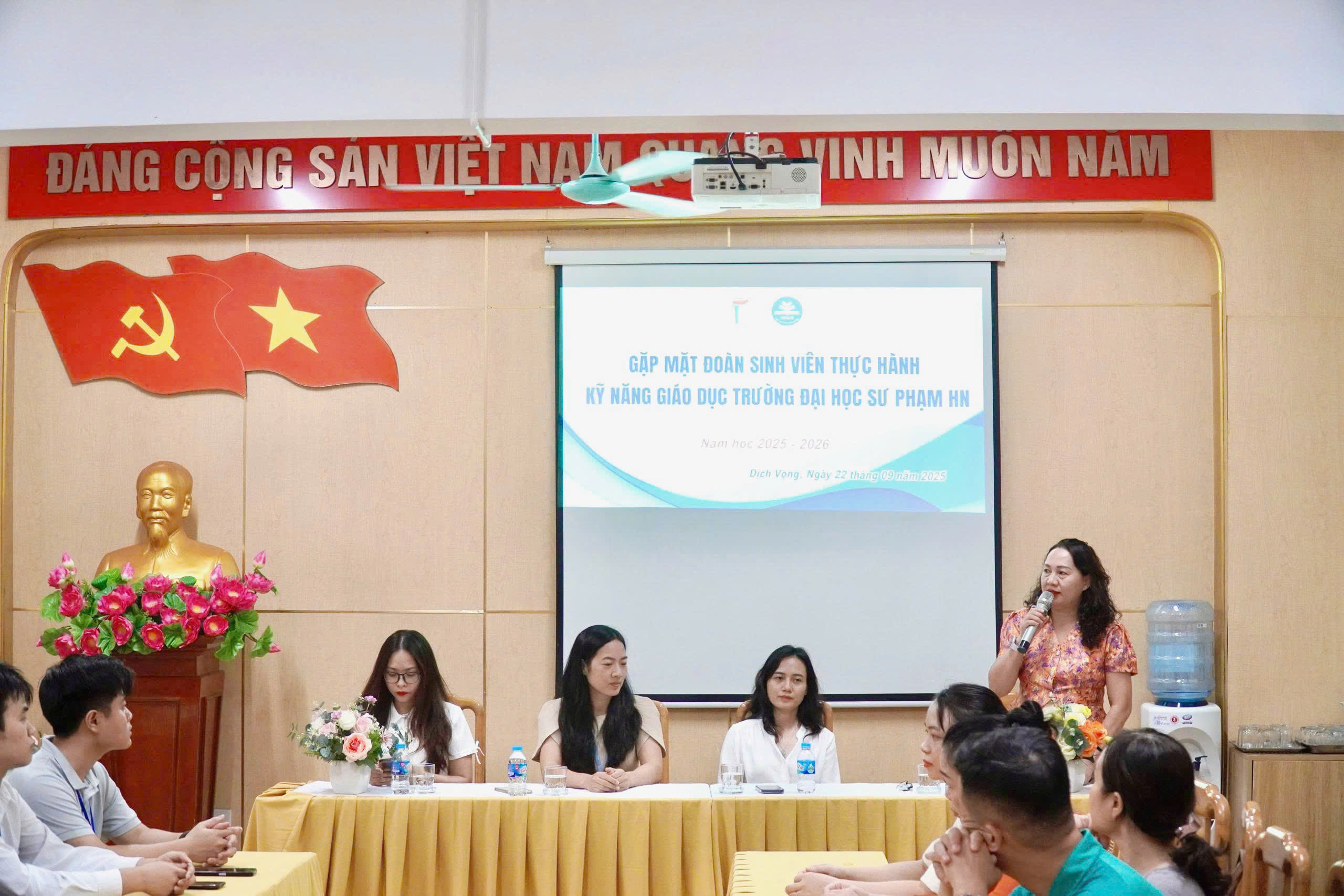 💥Trong buổi gặp mặt, cô Bùi Thị Lệ Thủy– Trưởng đoàn đã gửi lời cảm ơn chân thành đến nhà trường, đồng thời cô cũng gửi gắm lời dặn dò, chia sẻ tâm huyết, mong muốn các bạn giáo sinh sẽ có một kỳ kiến tập ý nghĩa.