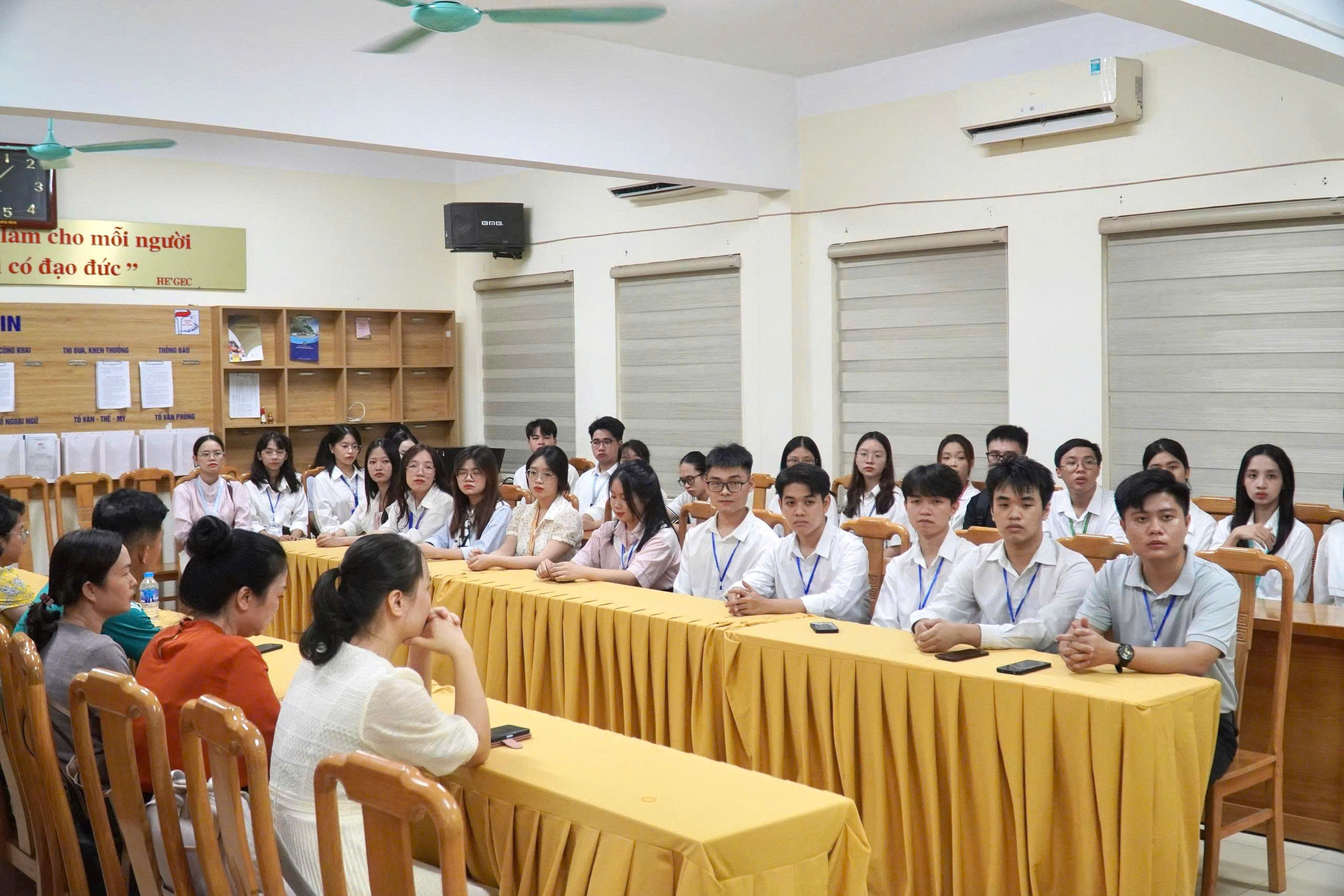 🌟Buổi đón tiếp diễn ra trong không khí trang trọng và ấm áp với sự tham dự của Ban Giám hiệu nhà trường, các thầy cô là giáo viên chủ nhiệm khối lớp 7, Cô Bùi Thị Lệ Thủy- trưởng đoàn cùng 40 giáo sinh đến từ các khoa thuộc trường ĐHSP Hà Nội.