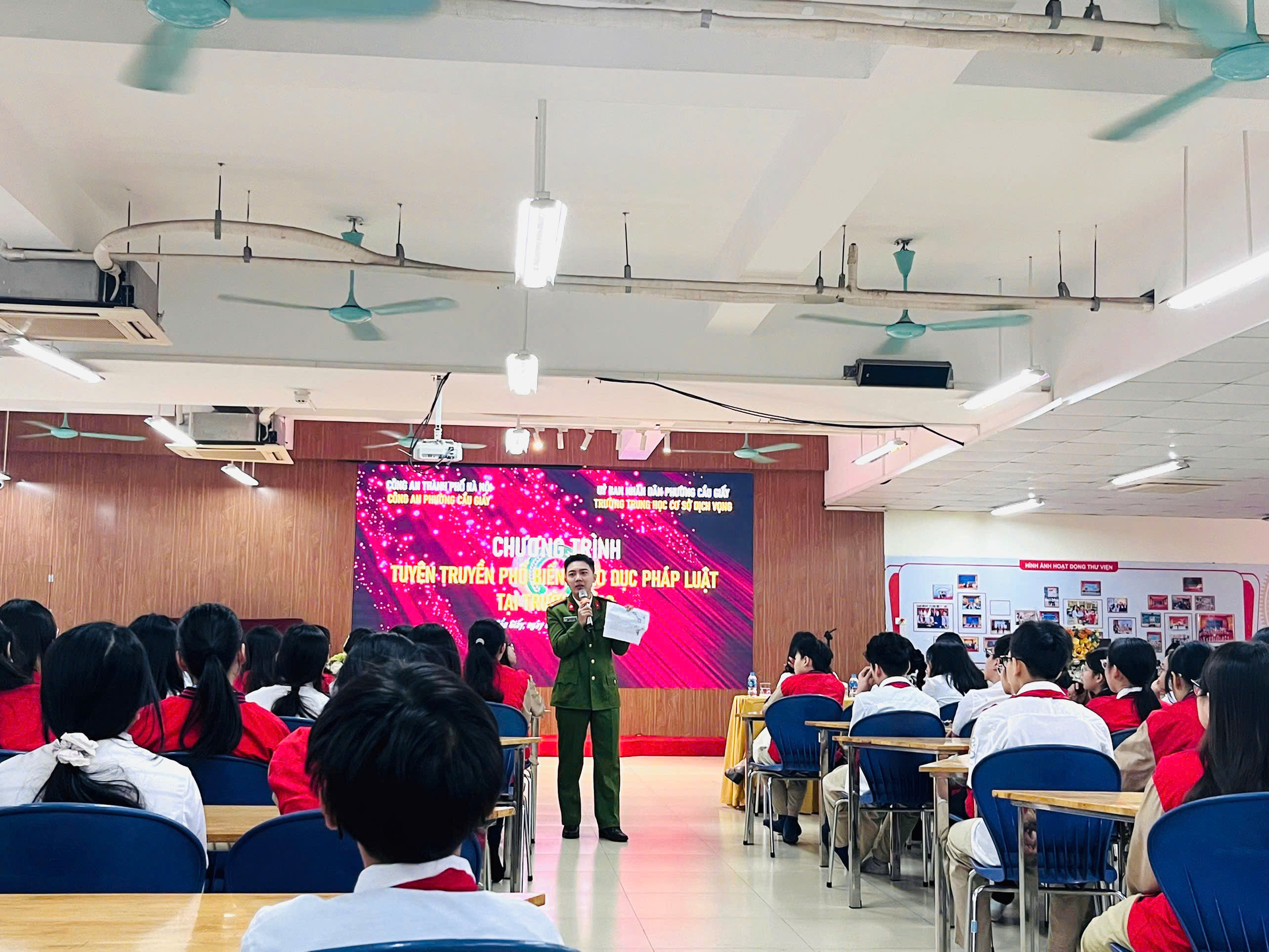 🌿 Thực hiện theo Công văn số 15/KHLT-THCSDV-CAP của UBND phường Cầu Giấy và kế hoạch công tác giáo dục pháp luật năm học 2025–2026, ngày 01/12/2025 trường THCS Dịch Vọng phối hợp với Công an phường Cầu Giấy tổ chức buổi tuyên truyền, phổ biến, giáo dục pháp luật về an toàn giao thông (ATGT) và an ninh trật tự (ANTT) cho toàn thể cán bộ giáo viên và học sinh.