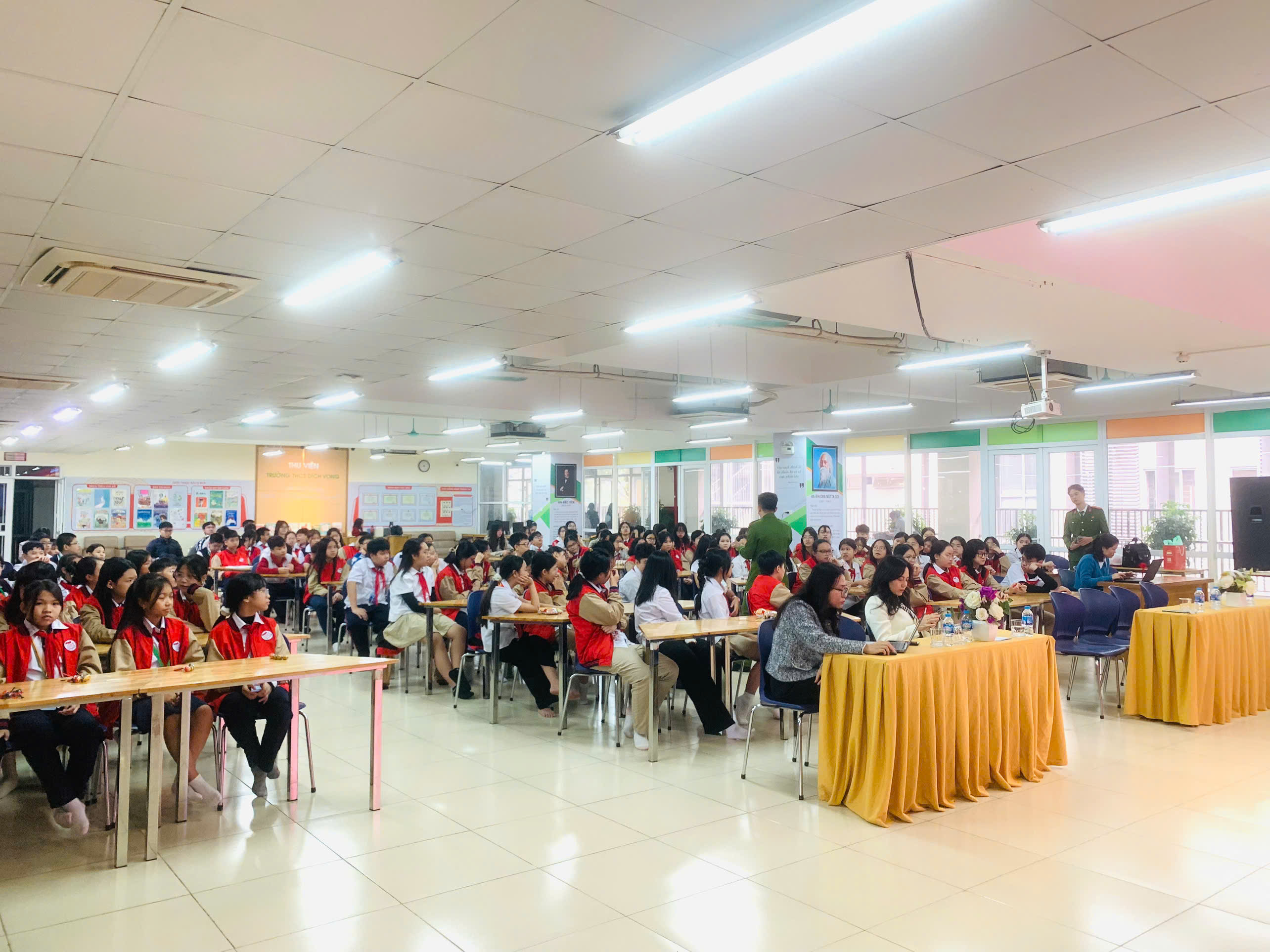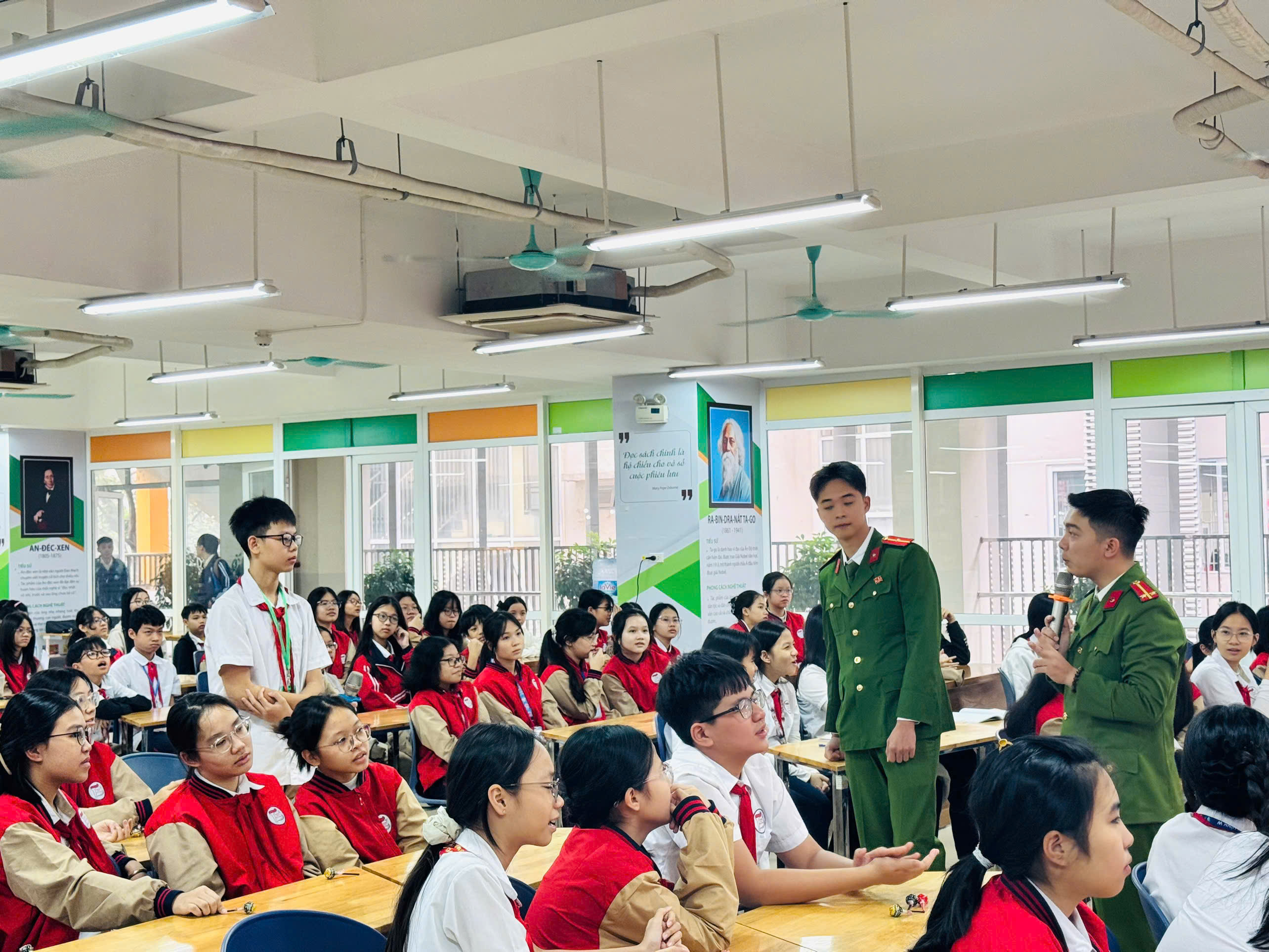 Tại buổi tuyên truyền, cán bộ giáo viên và các em học sinh đã được nghe đồng chí Trung uý Nguyễn Thành Đạt thông tin về tình hình trật tự an toàn giao thông trên địa bàn thành phố Hà Nội, chỉ ra những lỗi vi phạm phổ biến của học sinh hiện nay, phổ biến những nội dung cơ bản của Luật Giao thông đường bộ, các quy tắc bắt buộc khi tham gia giao thông như: quy định về độ tuổi điều khiển xe mô tô, việc đội mũ bảo hiểm đạt chuẩn khi ngồi trên xe mô tô, xe máy, xe đạp điện và ứng xử văn hóa khi tham gia giao thông.