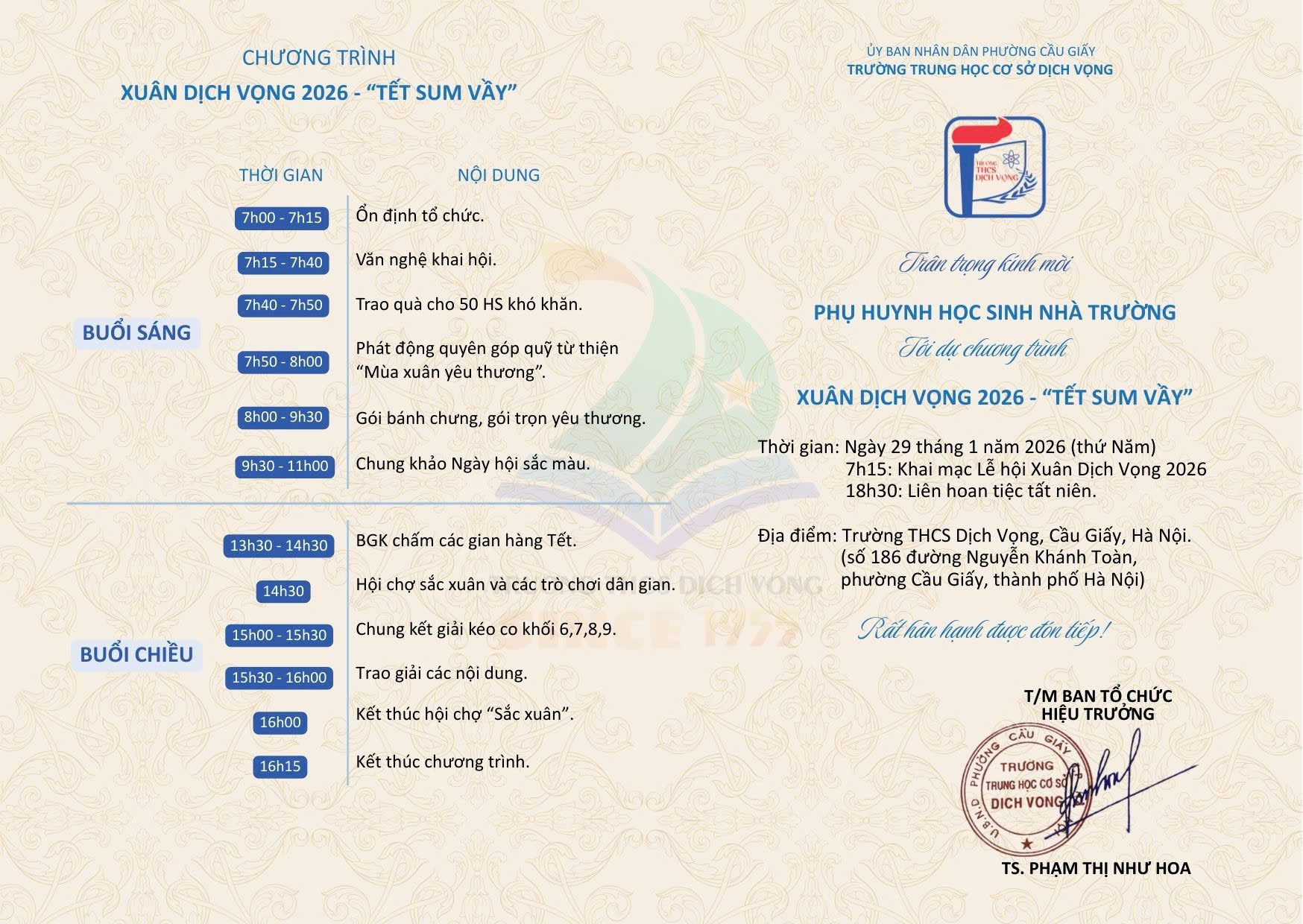 Trân trọng kính mời quý phụ huynh cùng toàn thể học sinh nhà trường tới tham dự và đồng hành cùng chương trình.
